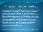 A program that focuses on the principles and techniques of communicating information, ideas, moods, and feelings through the creation of images on photographic film, plates, digital images and that may prepare individuals to be professional…